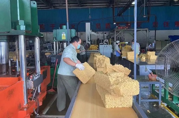 金隆加工分公司包装车间正抓紧全乳胶的产品包装生产。